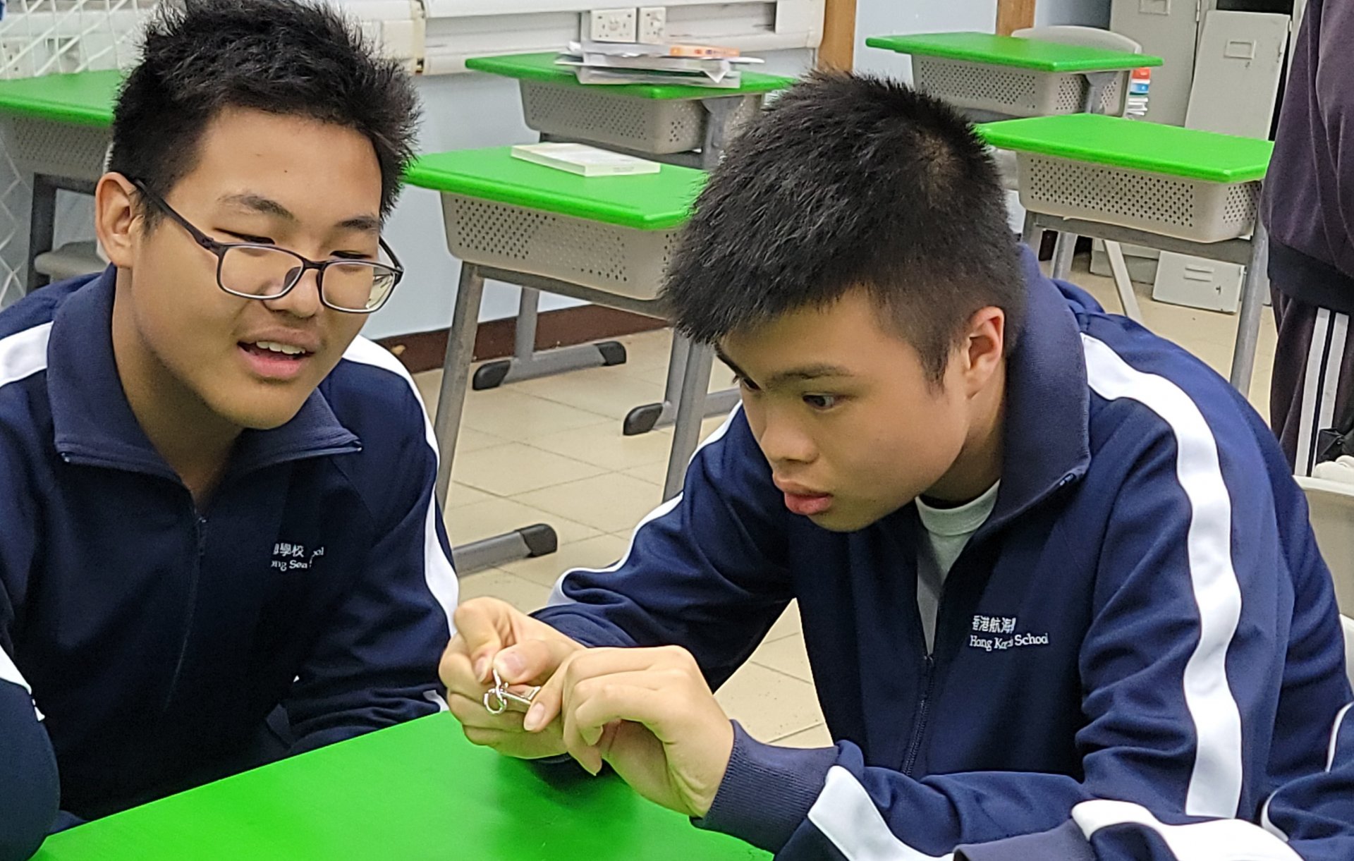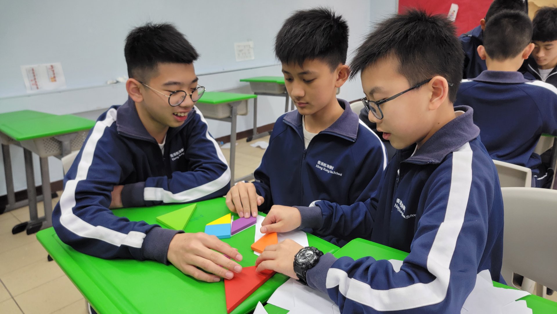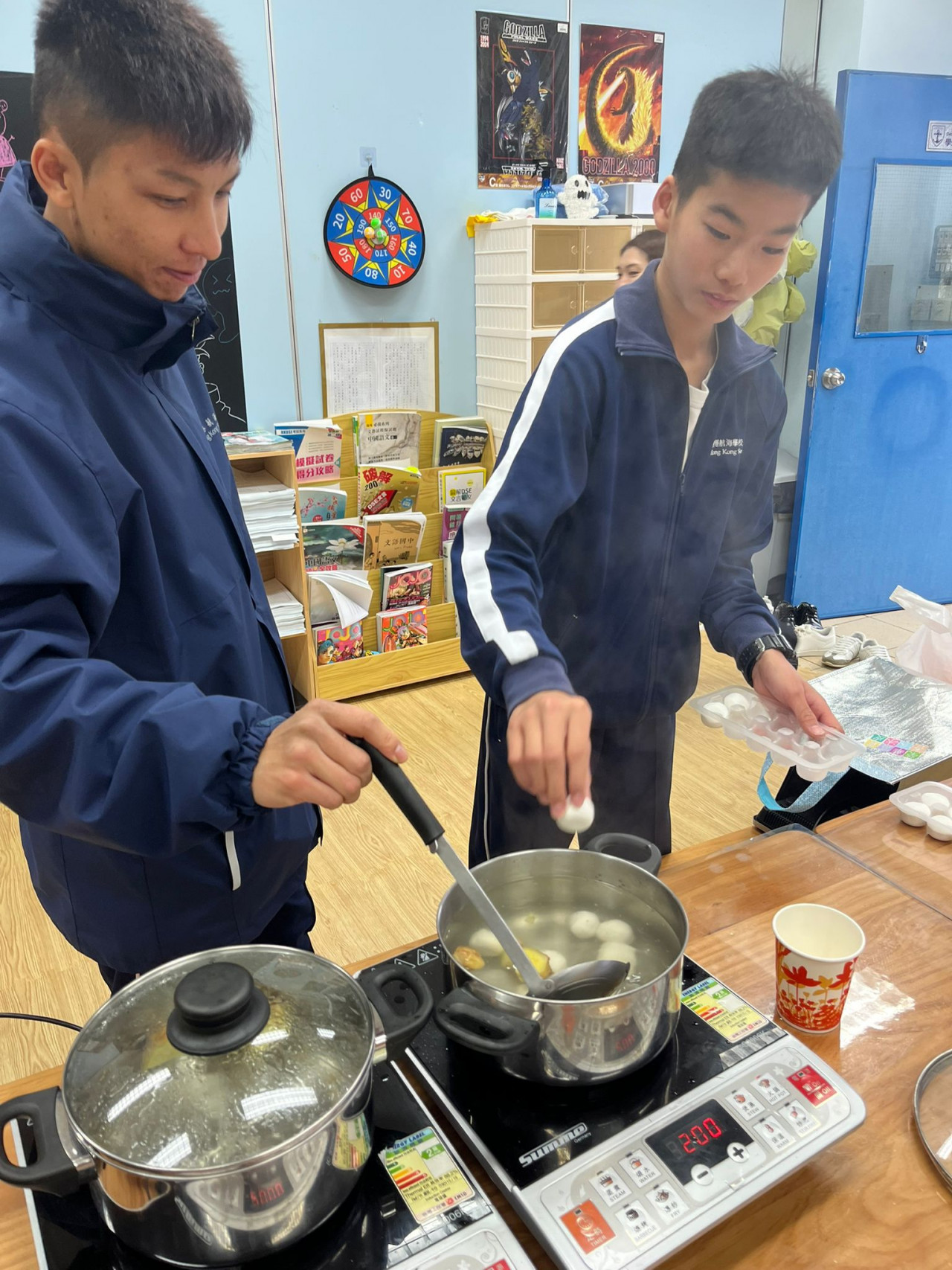 同學吃過湯圓,然後玩中華傳統的益智遊戲——猜燈謎,既應節也考驗同學的腦筋。醒獅工作坊,考體能,還要加上眼到、耳到,全身配合,方能靈活舞動獅子。班際分組比賽:蹴鞠、投壺、七巧板和九連環,除了是遊戲,也承載了中華傳統文化,令人從遊戲中增長智慧,讓同學在電玩之外,發掘了新的遊戲興趣。到圖書館背誦與元宵相關的詩詞,亦提升了同學對中國文學的認識。