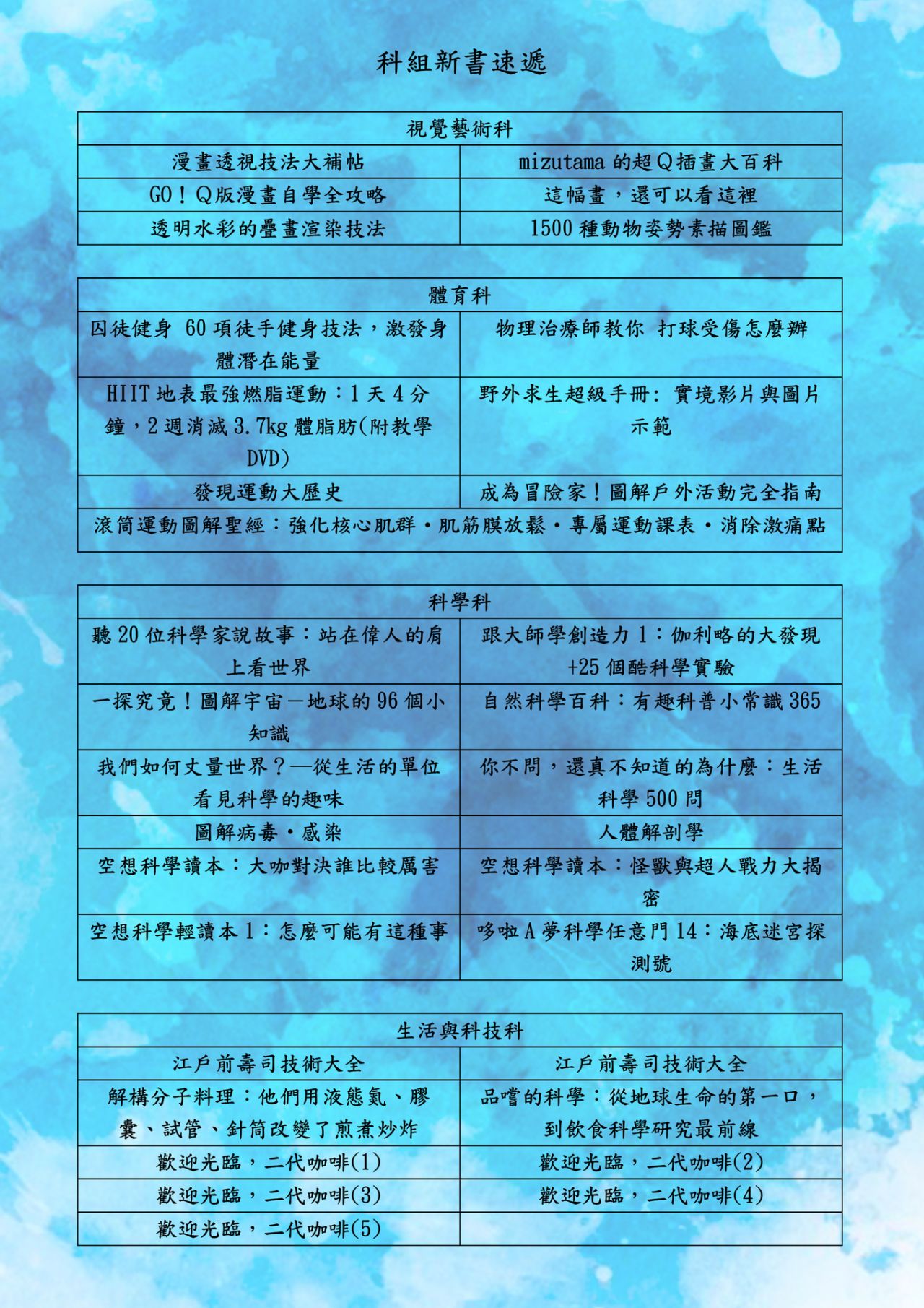 ◆ 其他科組推介書目總表